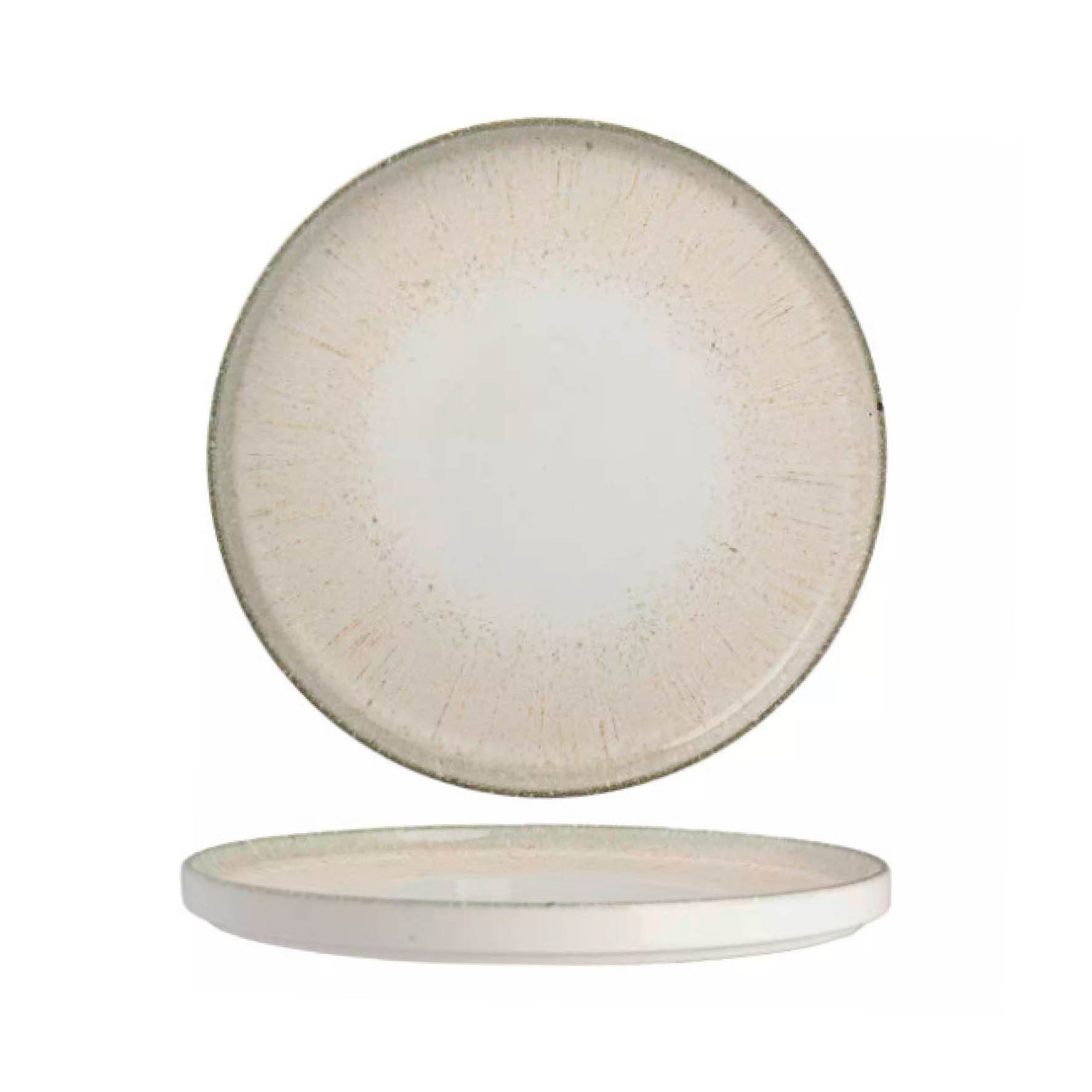 De borden hebben zorgvuldig aangebrachte details langs de randen, die zorgen voor een lichte en pure uitstraling. Het zachte roomwitte oppervlak, met subtiele beige, grijs- groene accenten, vormt een perfect canvas voor jouw gerechten.